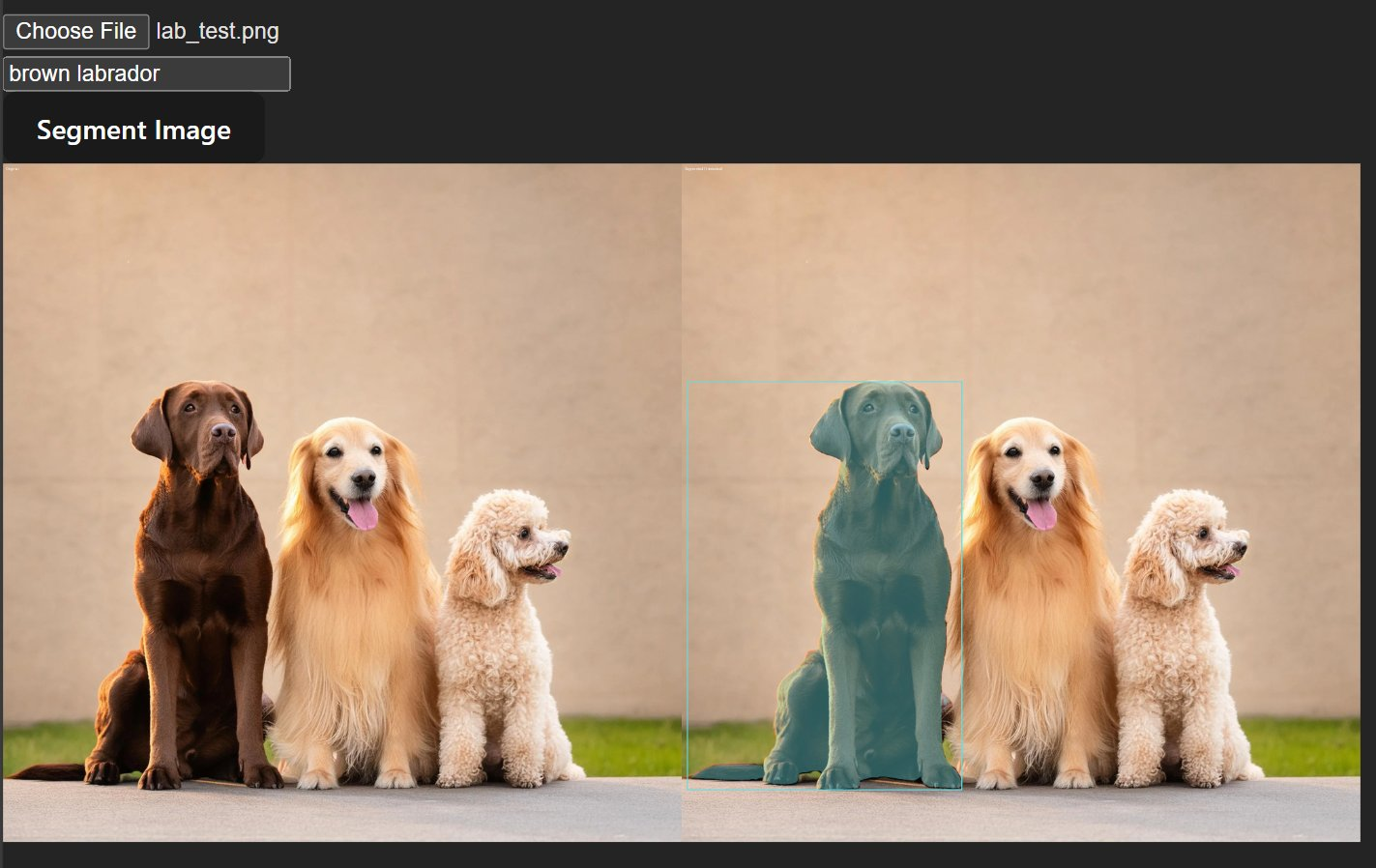 building a web app that segments objects in images and videos using text prompts. type "dog" and it finds all the dogs. type "person" and it highlights every person.